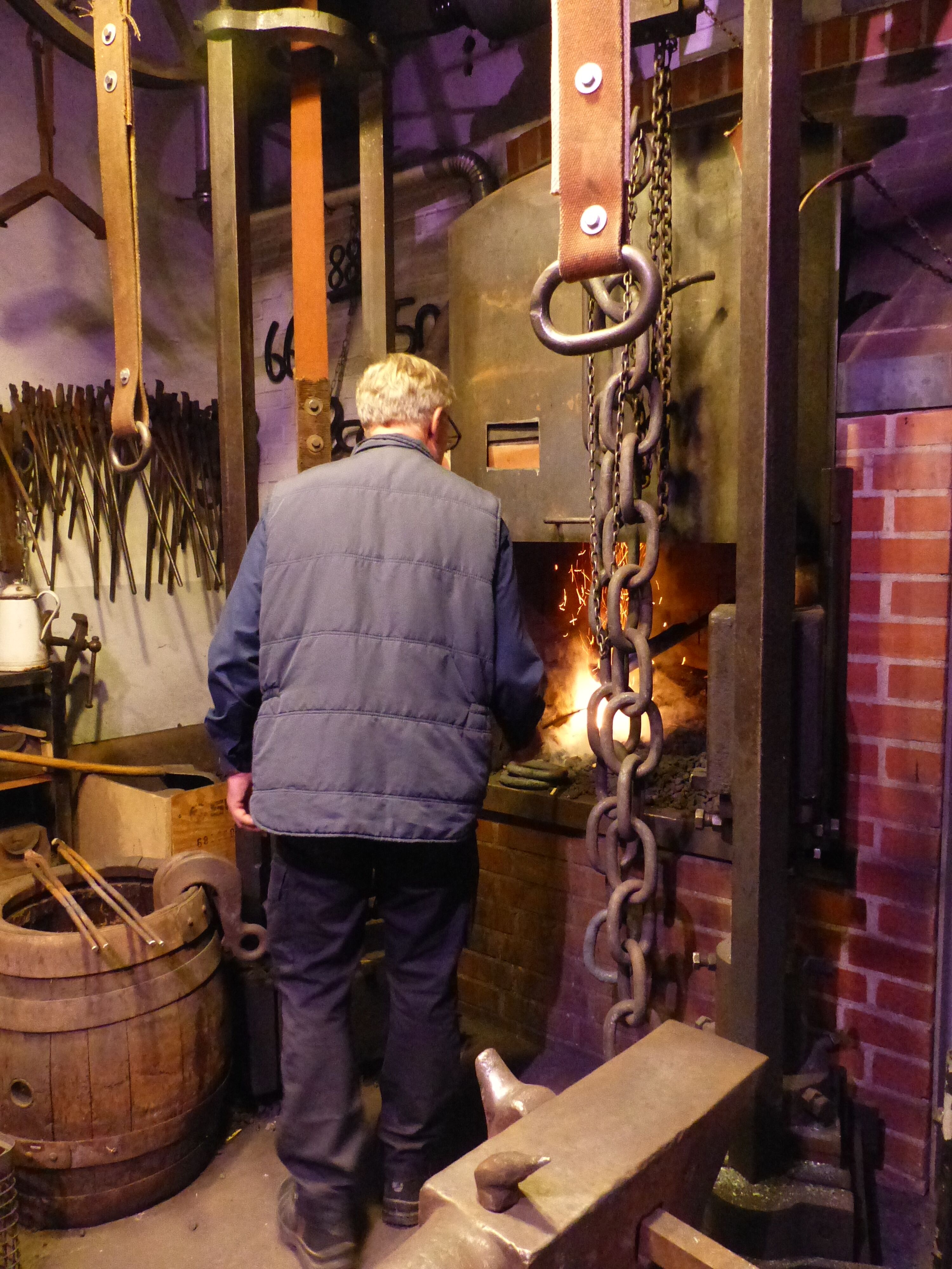 Nach einer Führung mit Hubert Buschjäger vom Förderverein haben die Teilnehmer die Möglichkeit zusammen mit dem Schmied aus glühendem Stahl Herzen zu formen und beide Herzen dauerhaft zu verbinden.